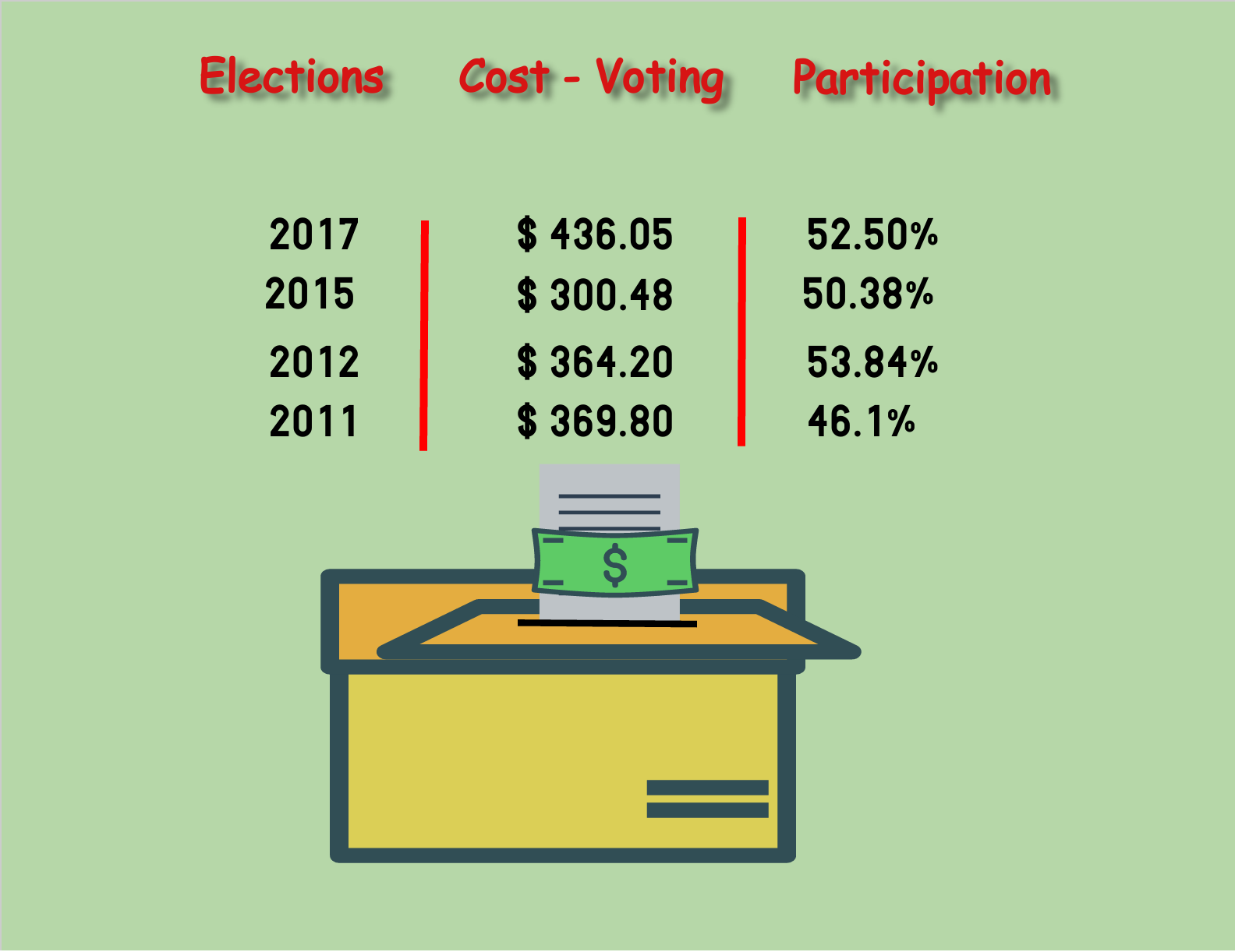 The “price” of the elections of last Sunday 4th of June, while it was one of the highest at state level in last years, got a bit diminished as it can be observed, due to the participation that overcame the average of 46%, since it got 52.50%, according to the Program of Preliminary Results (PREP in Spanish).