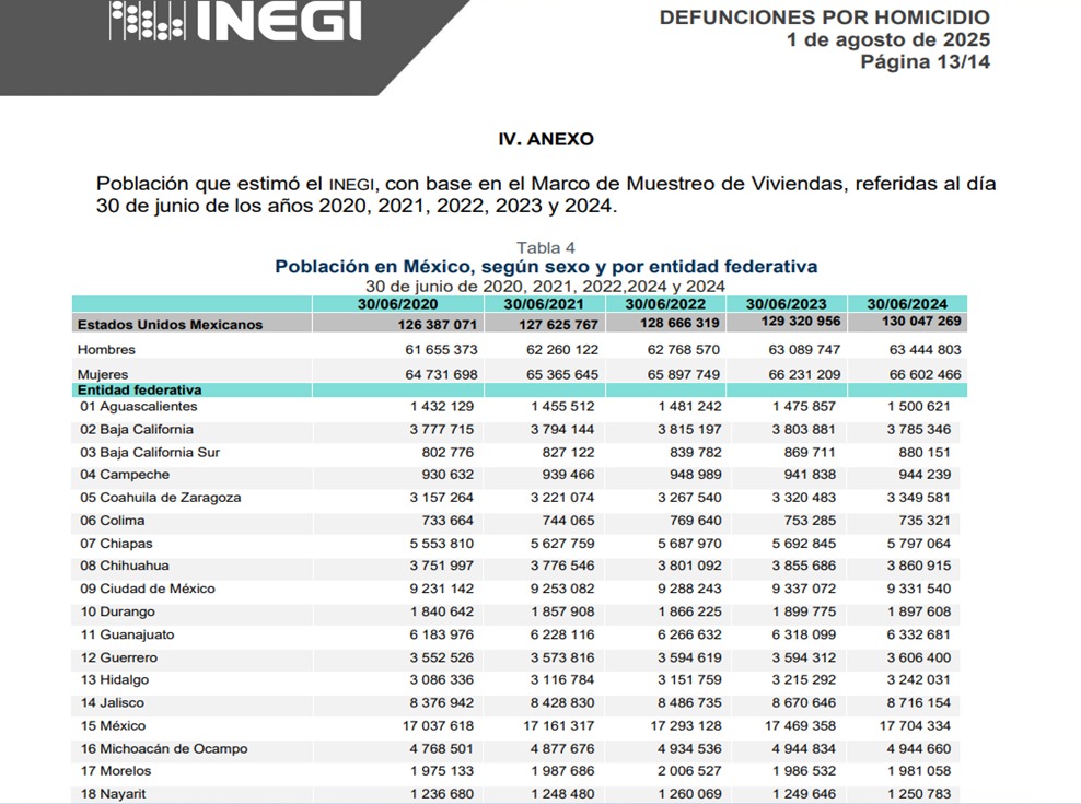 Incluso puede agregarse, con datos duros del propio INEGI, que 2024 rompió el récord de violencia mortal que se tenía, pues dos años antes, es decir 2022, había quedado como el año más violento con 3 mil 257 homicidios, de acuerdo con la TABLA I, que presentó INEG, en su reporte de resultados.