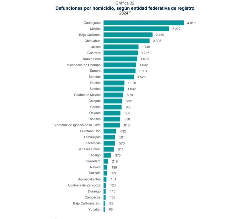 Pero no, solo eso, en comparación con el resto de las entidades de todo el país, el Estado de México se posicionó como la segunda entidad más violenta a nivel nacional con un total de 3 mil 277 homicidios en 2024, solo por debajo de Guanajuato, el cual reportó un total de 4 mil 015 en el periodo señalado.