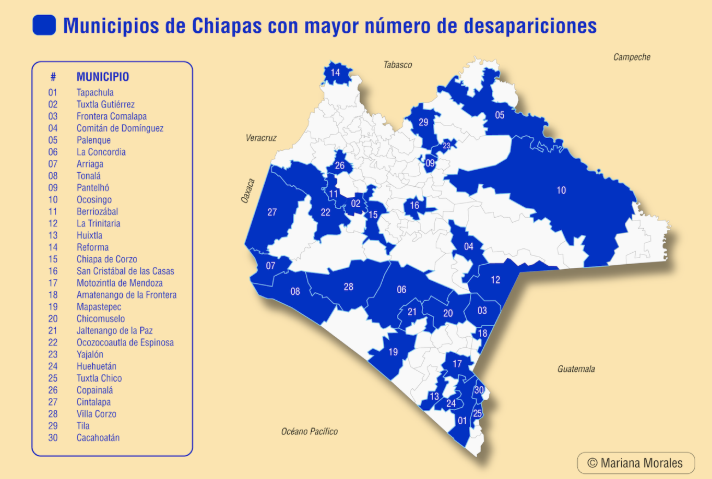 A nivel nacional, suelen desaparecer más hombres que mujeres, pero Chiapas es uno de los estados —junto con Yucatán, Campeche, Oaxaca, Tabasco, Tlaxcala y Aguascalientes— donde ocurre lo contrario, son más mujeres las desaparecidas, y el aumento más marcado es en niñas y en adolescentes, de acuerdo con Data Cívica.